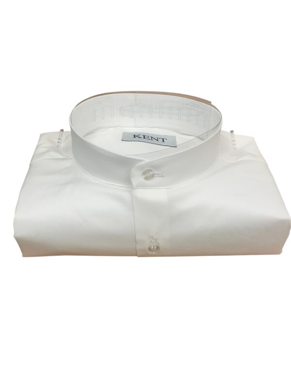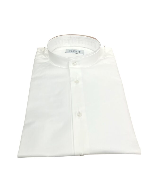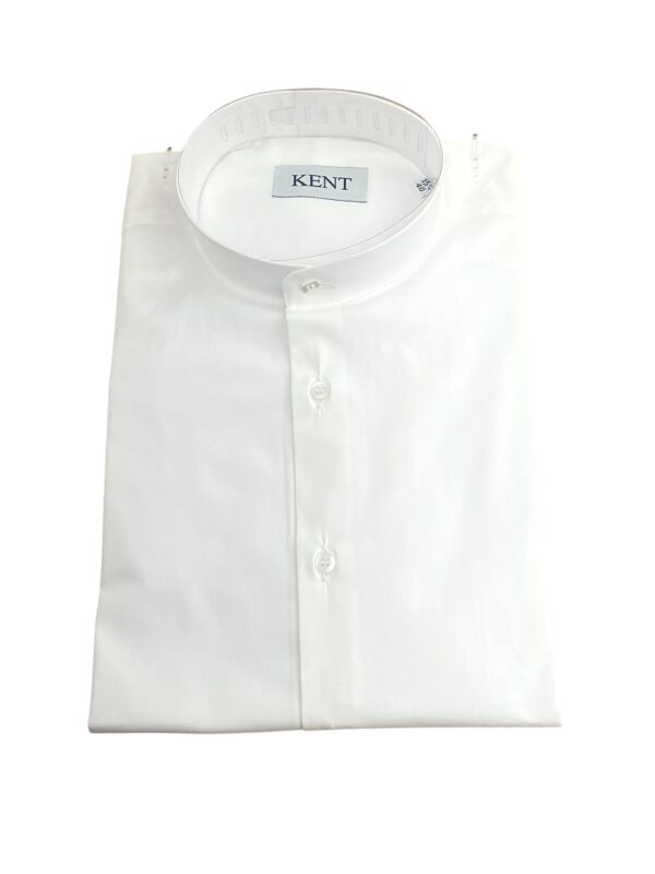 Camicia maniche lunghe, collo coreana in popelin misto cotone, chiusura bottone.